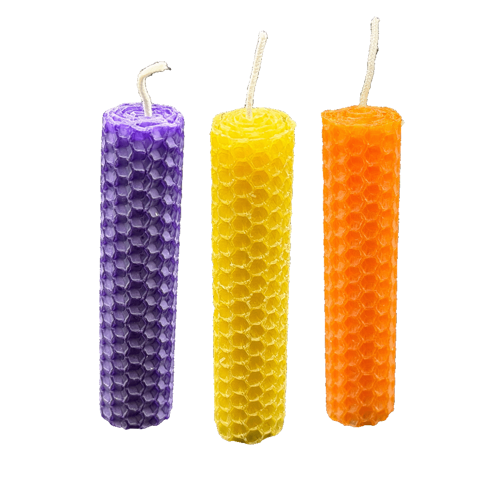 ✔ Includes 1 natural + 2 coloured rolled beeswax candles